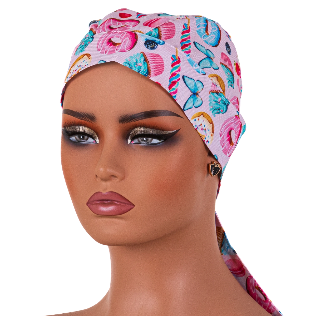 • 01 Bandana para chef de cozinha Unissex estampa Bolinhos Rosa - Dr Chef