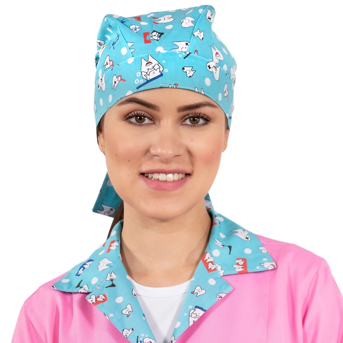O uniforme do profissional é uma das peças essenciais na limpeza e higiene do consultório, e vestir-se com peças alegres e estampadas melhora a experiência até mesmo de quem tem medo de dentista. Bandana Unissex oferece proteção parcial aos cabelos, com amarrador na parte de trás para o perfeito ajuste da peça na cabeça, sendo confeccionada em tecido leve e fresco para suportar as horas de trabalho. Sua linda estampa de dentinhos, novidade exclusiva Dr Chef, traz delicadeza, diversão e profissionalismo à peça, compondo o uniforme completo pronto para as consultas!