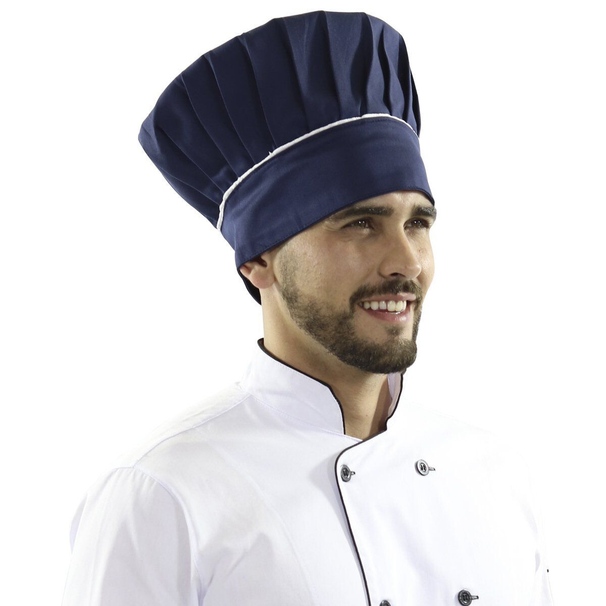Seja o chef destaque na cozinha do seu restaurante preparando deliciosas receitas e valorizando seu estilo e imagem profissional. Produzido em tecido de toque leve com costuras reforçadas para uma maior durabilidade da peça, possui um lindo detalhe em viés branco que destaca o chapéu em meio ao tom de azul blueberry. Seu fechamento com fecho de contato facilita a colocação e permite o encaixe perfeito em sua cabeça além da cor exclusiva modelo azul blueberry super moderna. Valorizando o grande profissional que és, a touca complementa o uniforme de todos os grandes chefs que amam preparar belas receitas sem perder o estilo e elegância!