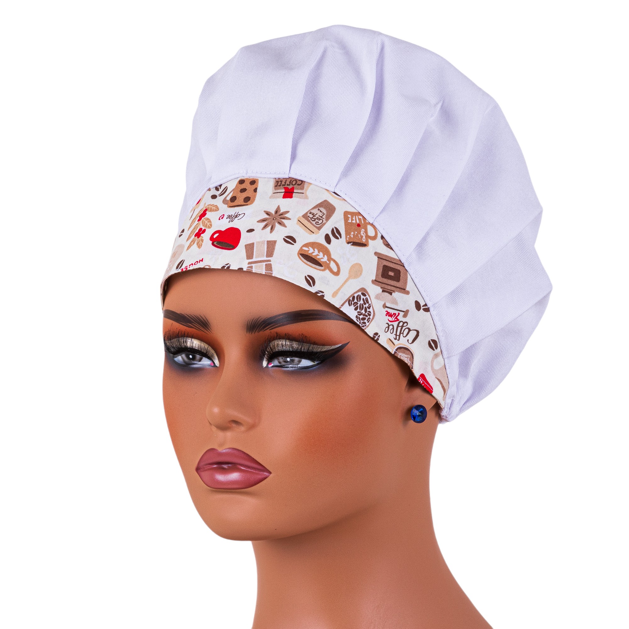 Se você, confeiteiro, padeiro, garçom ou chef de cozinha, busca se vestir melhor e de forma mais adequada no trabalho, passando uma imagem profissional e positiva do seu estabelecimento e de sua profissão, a touca tipo gorro com estampa de café é ideal para você. É perfeita para utilizar em padarias, bares, restaurantes, confeitarias e , até mesmo, para produzir fotografias em estúdios profissionais. A sua modelagem é unissex, veste muito bem e é super confortável para usar no dia a dia de trabalho movimentado sem causar desconforto ou incômodo. Além disso, auxilia bastante mantendo o cabelo bem preso e impede que ele caia sobre os olhos, isso porque possui elástico na parte de trás que ajuda a manter a touca bem firme na cabeça.