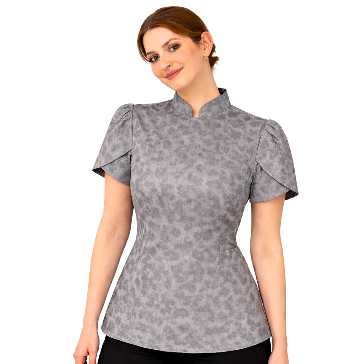 Produzida em tecido Premium de alta durabilidade, mantém sua aparência impecável mesmo após muitas lavagens, com detalhes delicadamente desenhados no tecido que trazem um charme único e refinado. A manga tulipa, com leve volume no estilo princesa, acrescenta feminilidade na medida certa, enquanto o corte acinturado realça a silhueta com discrição e elegância. A gola padre reforça o visual sofisticado da peça, e o fechamento por botões de pressão garante praticidade na rotina. Com costuras reforçadas e acabamento de alto padrão, é uma escolha segura para quem deseja unir conforto, resistência e uma presença marcante na cozinha.