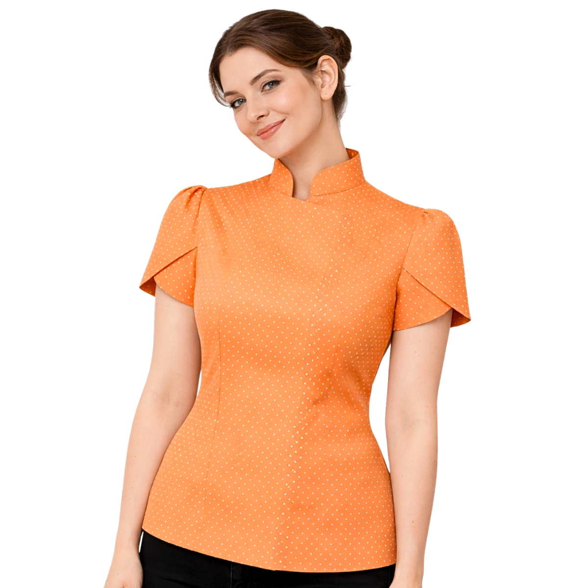 • 01 Dólmã feminina acinturada manga Tulipa estampa Poá Laranja - Dr Chef