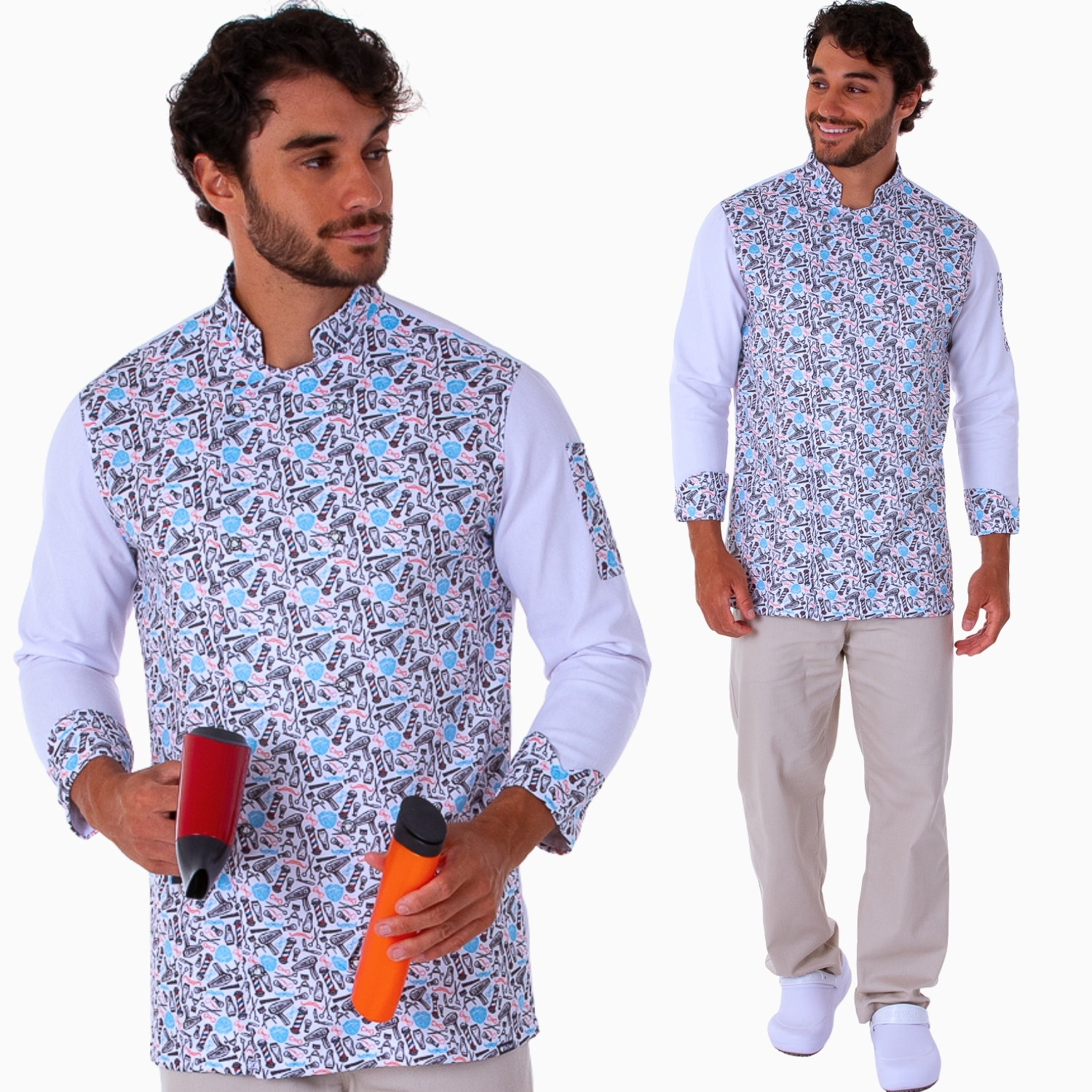 A gola tipo padre e os botões de pressão adicionam um toque especial ao uniforme. Disponível em diversas cores, este modelo pode ser personalizado com nome do chef ou logotipo do estabelecimento, tornando-se uma ótima opção para uniformizar a equipe e agregar identidade visual ao local Sua facilidade de lavagem e secagem rápida, juntamente com a estampa faz dela a escolha ideal para quem busca conforto, durabilidade e personalidade no dia a dia. Pensada para elevar a imagem profissional, esta dólmã Dr Chef une presença, conforto e resistência para acompanhar a rotina intensa do barbeiro com estilo, confiança e qualidade Premium que só a Dr Chef sabe oferecer!