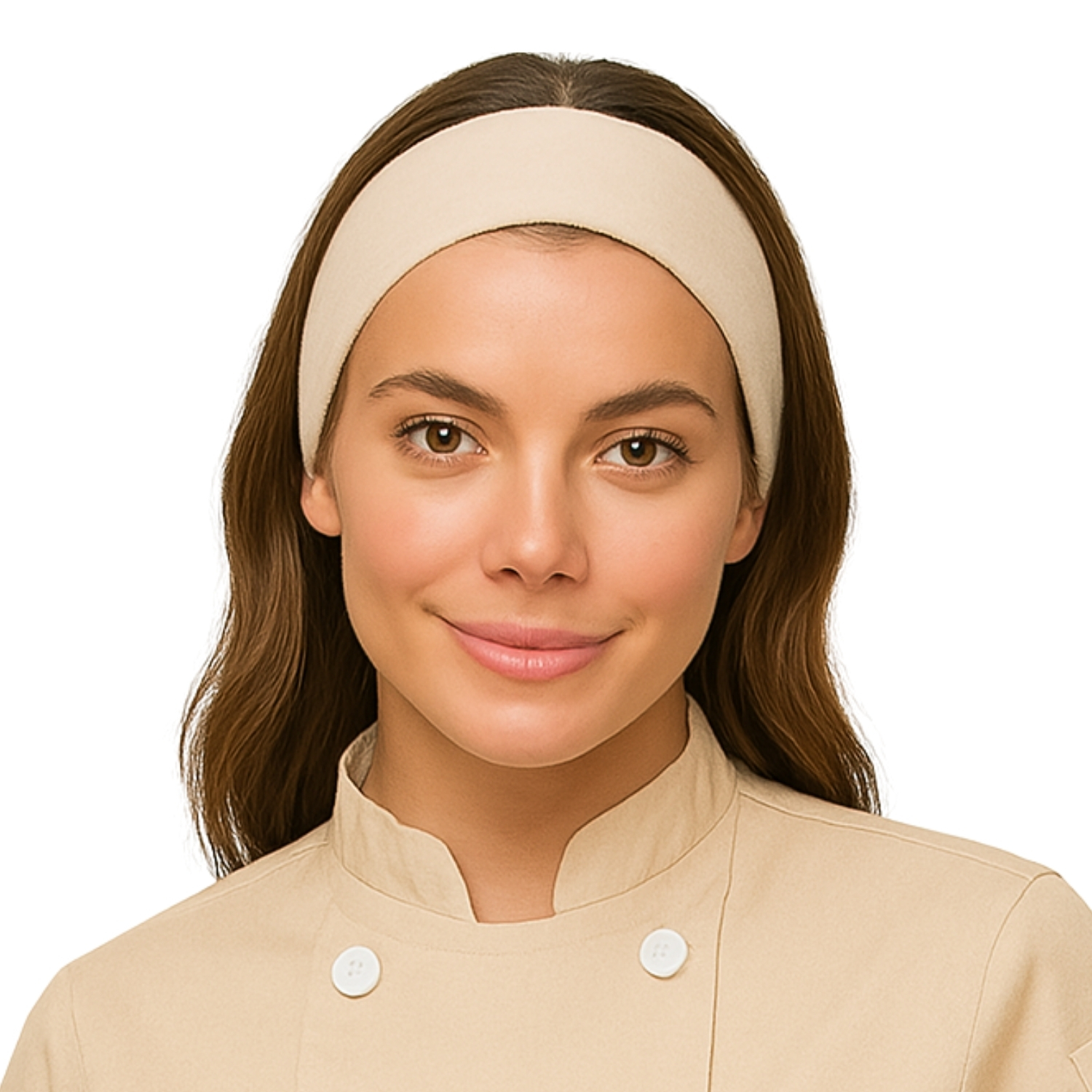 Delicada no visual e essencial na rotina de quem vive entre panelas e criações. A faixa de cabelo feminina bege da Dr Chef foi desenvolvida para chefs de cozinha, confeiteiras, padeiras e profissionais da gastronomia que prezam por higiene, conforto e uma apresentação impecável — um toque de cuidado que une profissionalismo, charme e sofisticação.