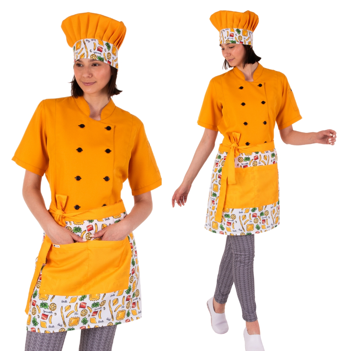 Este é o kit perfeito para cozinheiras que desejam unir estilo, identidade e profissionalismo em cada detalhe da sua rotina gastronômica. Desenvolvido para quem vive a cozinha com paixão e intensidade, este conjunto combina conforto, elegância e funcionalidade em peças que valorizam o corpo, elevam a apresentação e ainda transformam o ambiente com um toque vibrante e cheio de criatividade. O kit possui 3 peças: uma dólmã de caimento acinturado Amarelo Mostarda, um chapéu mestre cuca estampado com Massas Italianas e um avental de cintura ajustável com bolso também na estampa Massas Italianas. O conjunto ideal com bolsos funcionais e práticos para usar na cozinha, as cores vivas trazem alegria, vibração e descontração para o ambiente de trabalho enquanto as estampas nítidas e de alta qualidade trazem exclusividade e originalidade para o dia a dia.